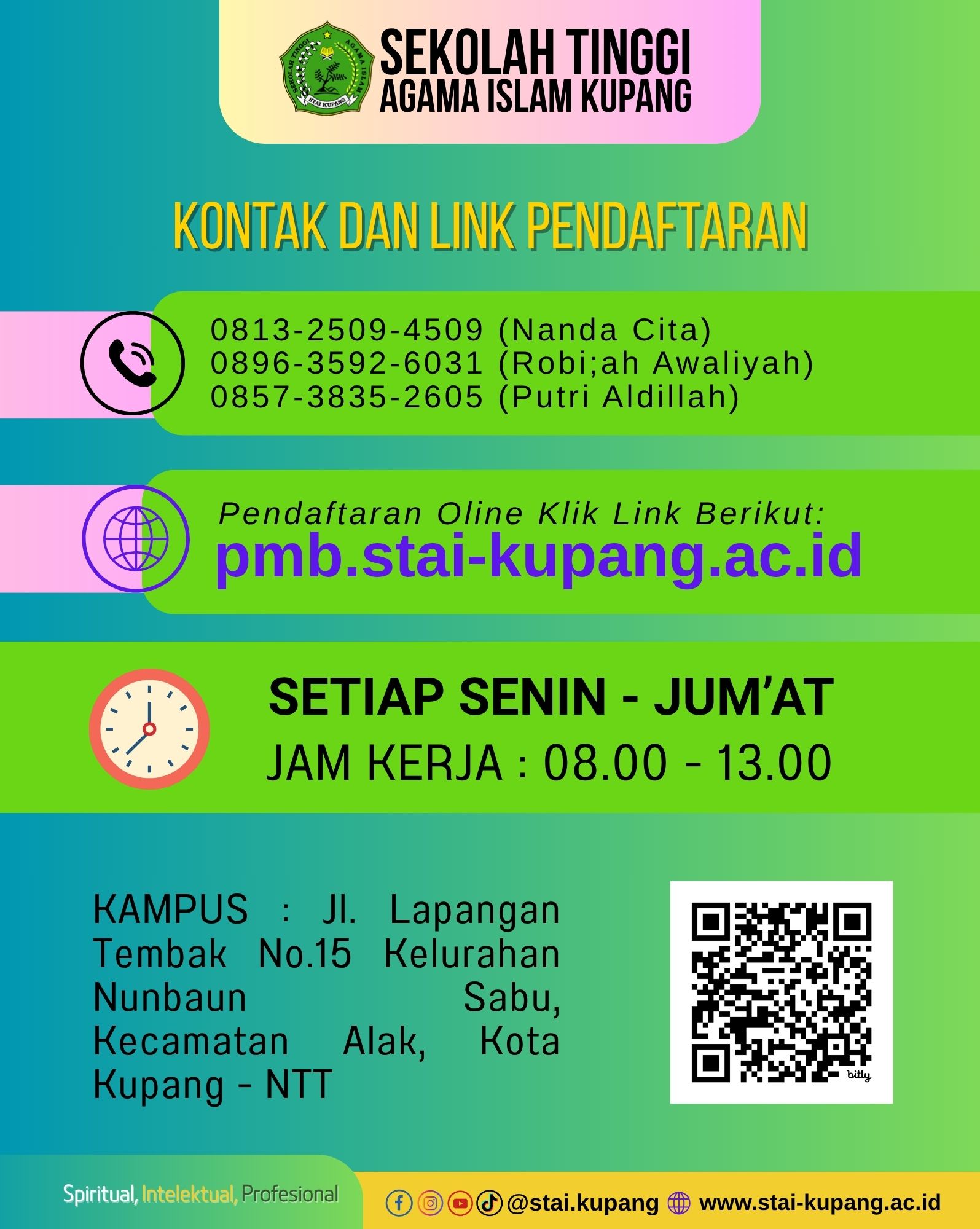 Sekolah Tinggi Agama Islam Kupang menyediakan PMB secara online diharapkan proses PMB dapat berjalan cepat dan bisa dilakukan dimanapun dan kapanpun selama sesi PMB Online dibuka. Sekolah Tinggi Agama Islam Kupang.